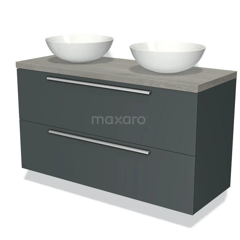 Modulo Plato Vanity units for countertop basin | 120 cm Dark grey Flat front Grey oak worktop 2 Stacked drawers