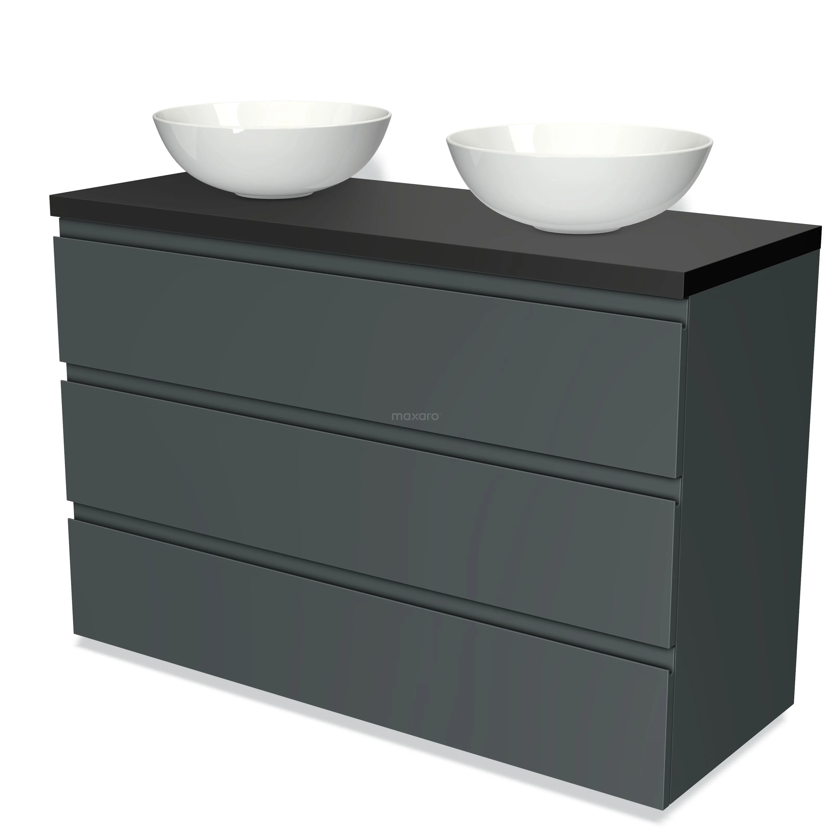 Modulo Plato Vanity units for countertop basin | 120 cm Dark grey Handle-less front Matte black worktop 3 drawers