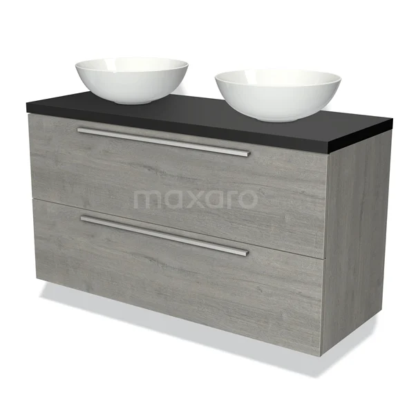 Modulo Plato Vanity units for countertop basin | 120 cm Grey oak Flat front Matte black worktop 2 Stacked drawers