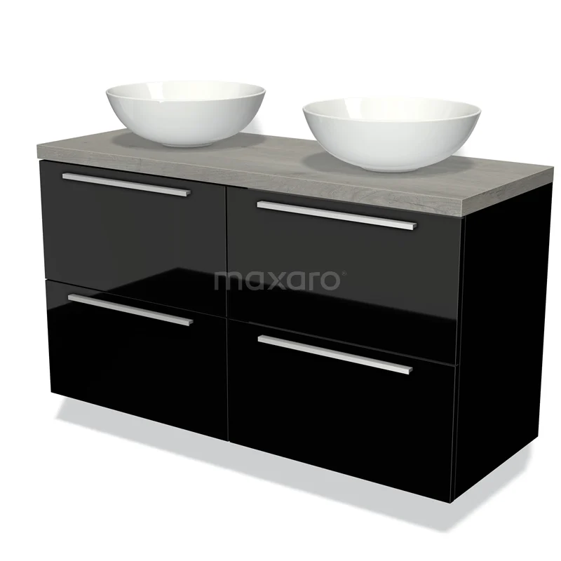 Modulo Plato Vanity units for countertop basin | 120 cm High-gloss black Flat front Grey oak worktop 4 drawers