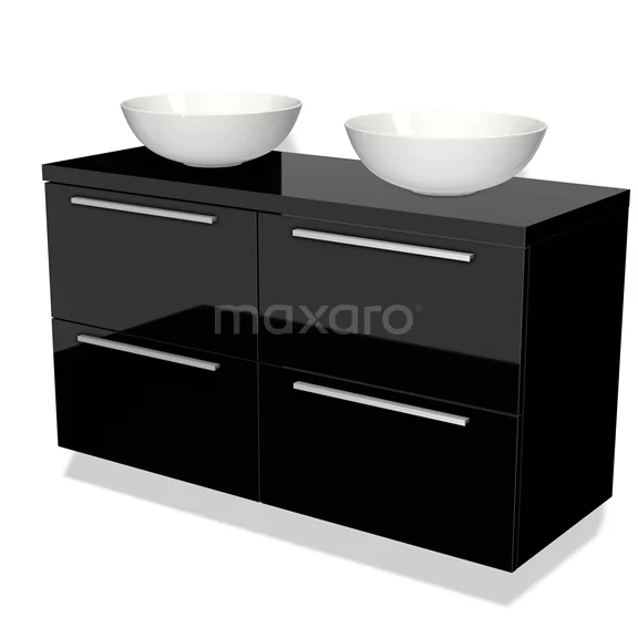 Modulo Plato Vanity units for countertop basin | 120 cm High-gloss black Flat front High-gloss black worktop 4 drawers