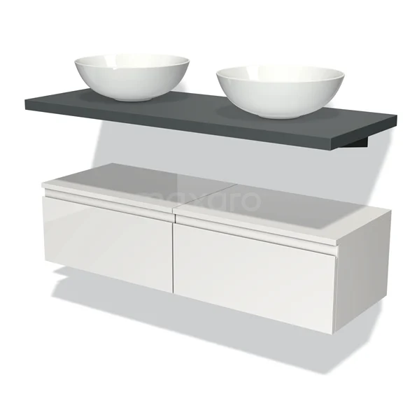 Modulo Plato Vanity units for countertop basin | 120 cm High-gloss white Handle-less front Dark grey worktop Low floating