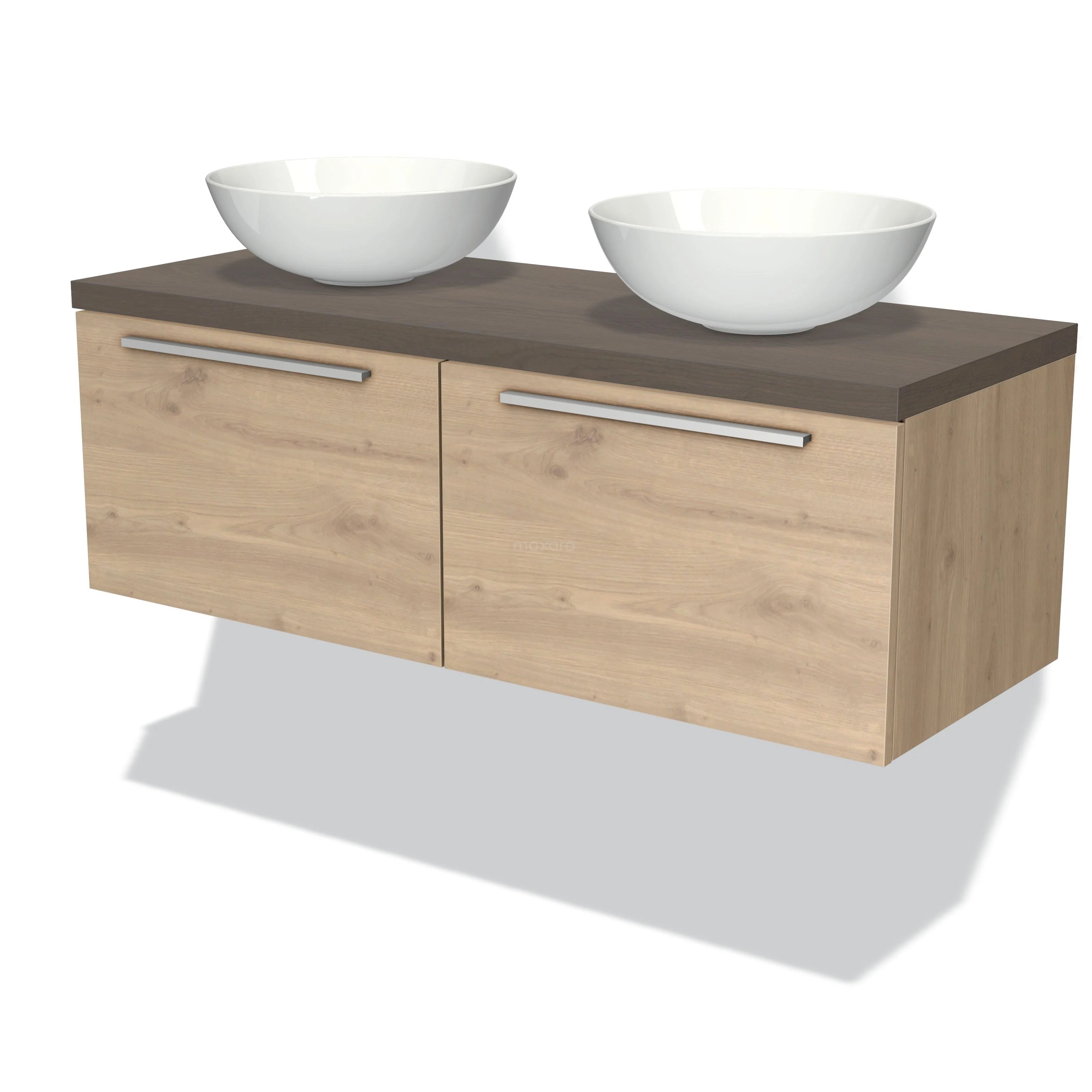 Modulo Plato Vanity units for countertop basin | 120 cm Light brown oak Flat front Dark brown oak worktop 2 Side-by-side drawers