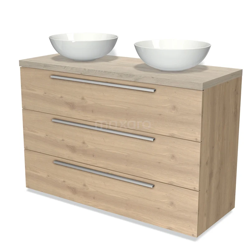 Modulo Plato Vanity units for countertop basin | 120 cm Light brown oak Flat front Light grey oak worktop 3 drawers