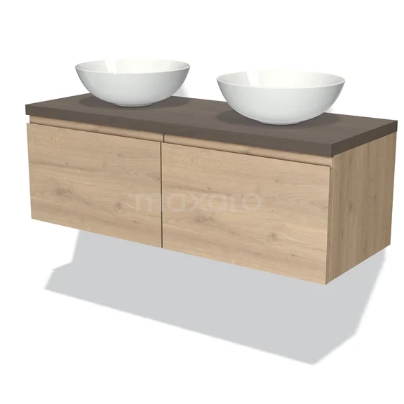 Modulo Plato Vanity units for countertop basin | 120 cm Light brown oak Handle-less front Dark brown oak worktop 2 Side-by-side drawers