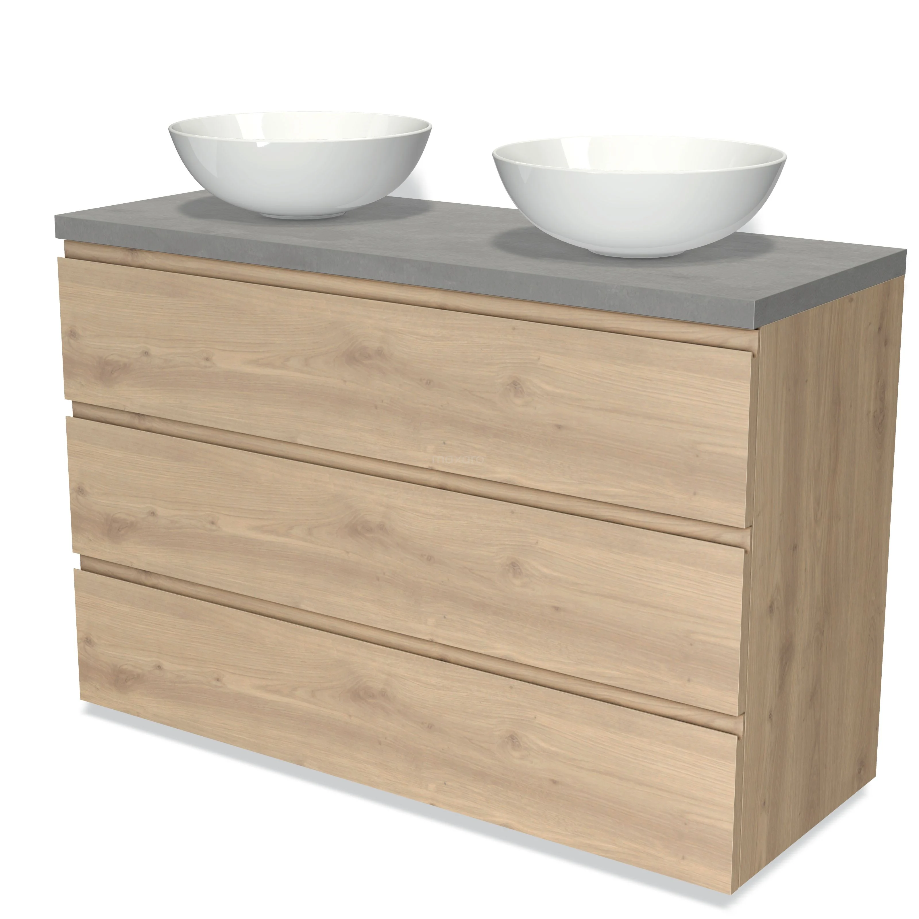 Modulo Plato Vanity units for countertop basin | 120 cm Light brown oak Handle-less front Light grey concrete worktop 3 drawers