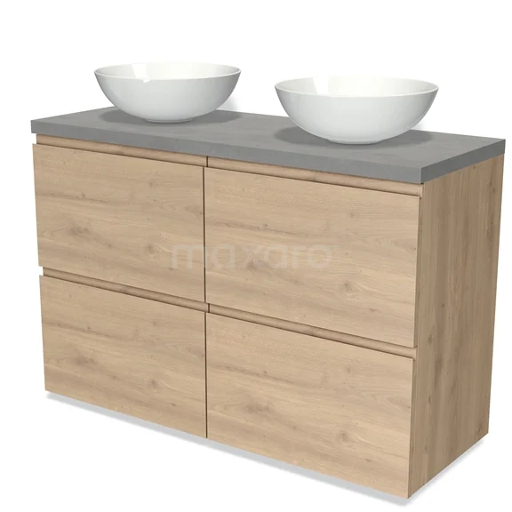 Modulo Plato Vanity units for countertop basin | 120 cm Light brown oak Handle-less front Light grey concrete worktop 4 high drawers