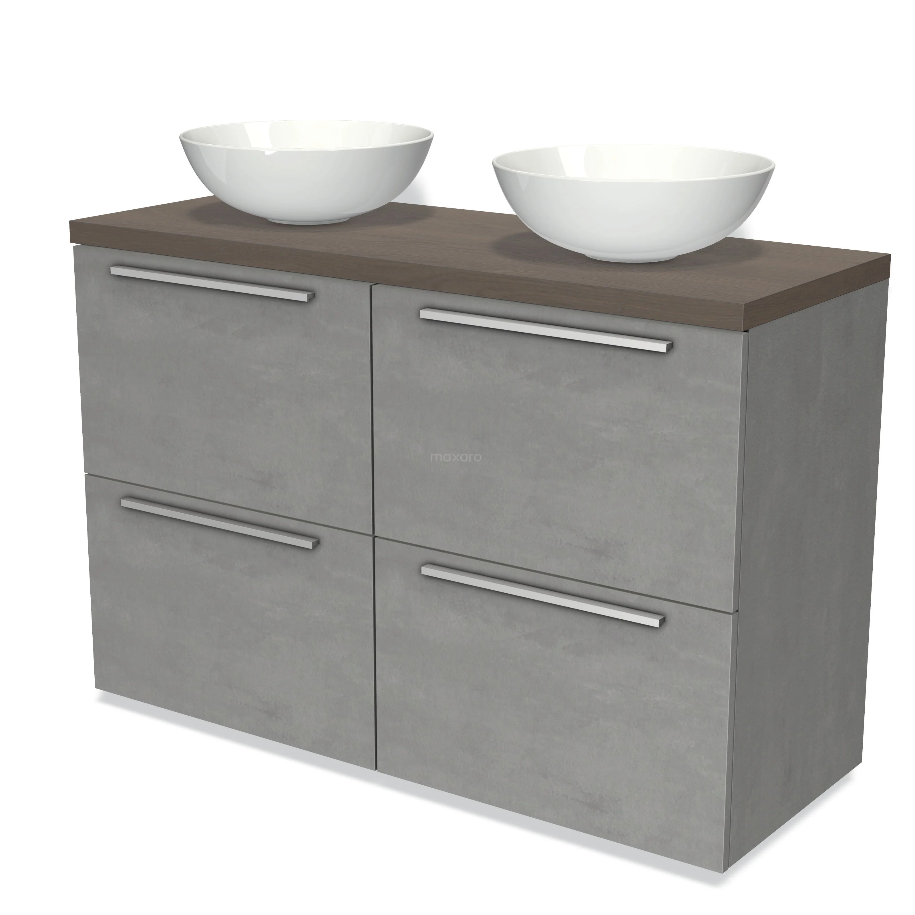 Modulo Plato Vanity units for countertop basin | 120 cm Light grey concrete Flat front Dark brown oak worktop 4 high drawers