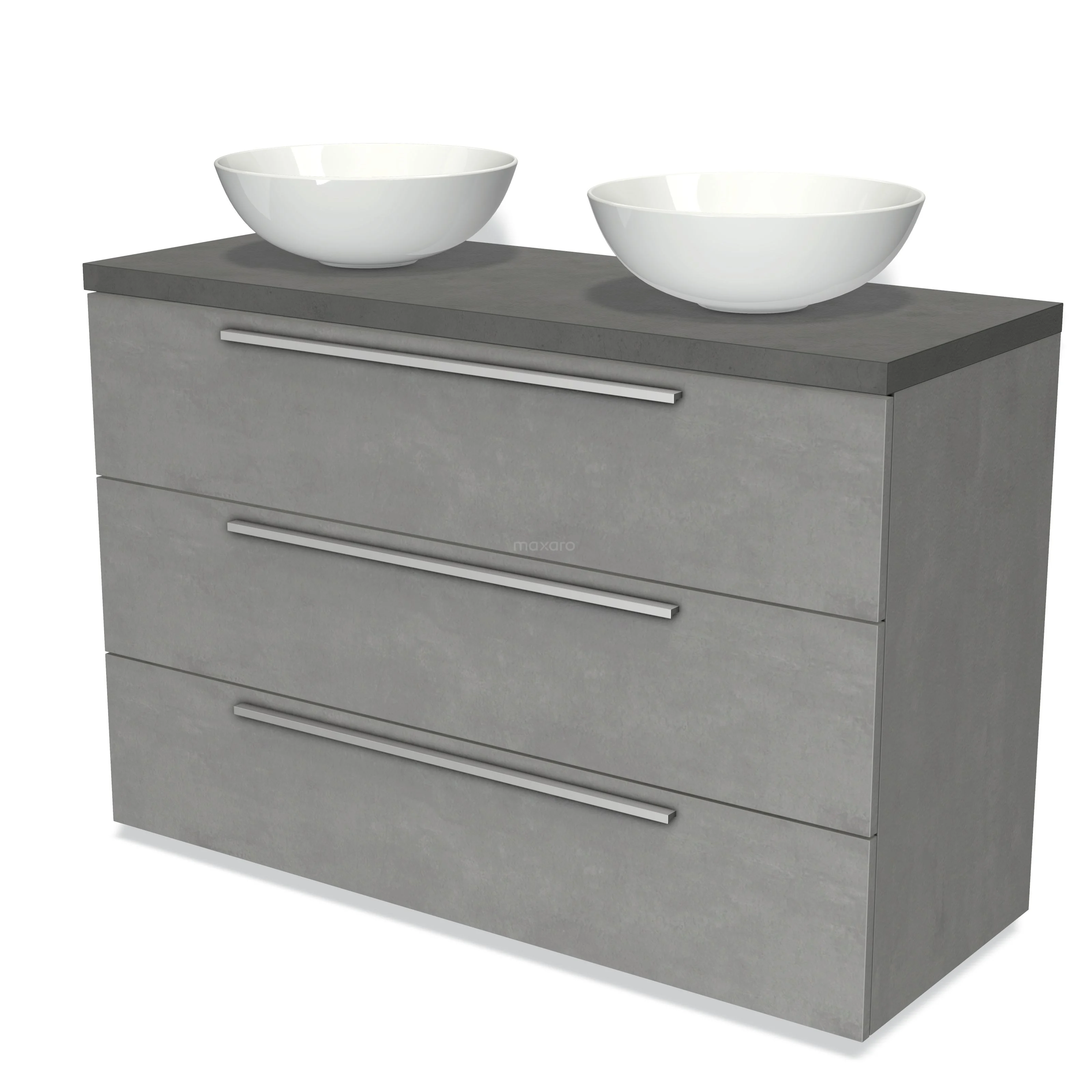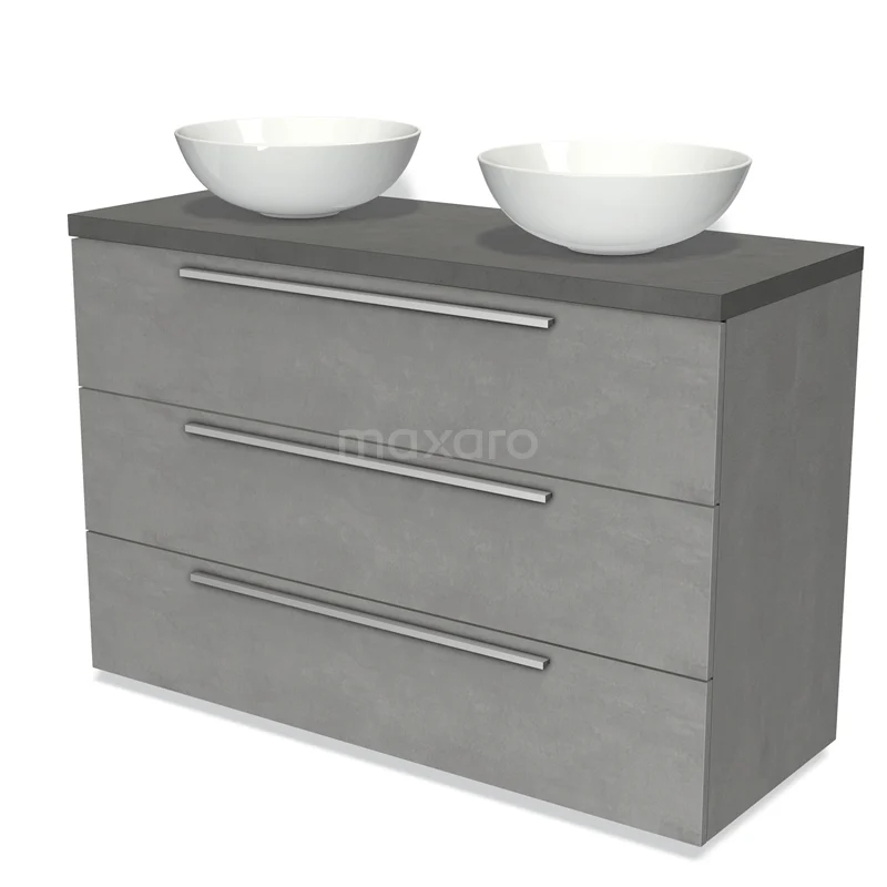 Modulo Plato Vanity units for countertop basin | 120 cm Light grey concrete Flat front Dark grey concrete worktop 3 drawers