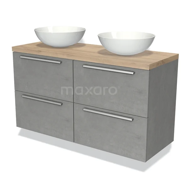 Modulo Plato Vanity units for countertop basin | 120 cm Light grey concrete Flat front Light brown oak worktop 4 drawers