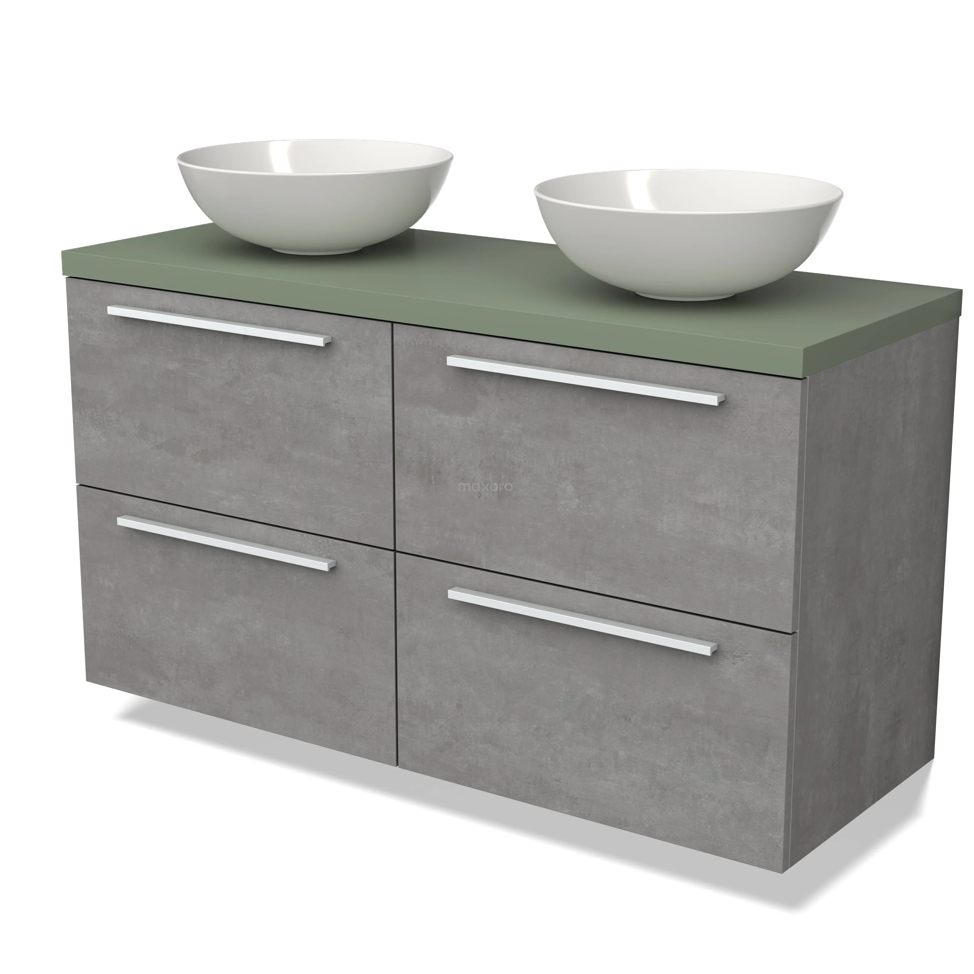 Modulo Plato Vanity units for countertop basin | 120 cm Light grey concrete Flat front Sage green worktop 4 drawers