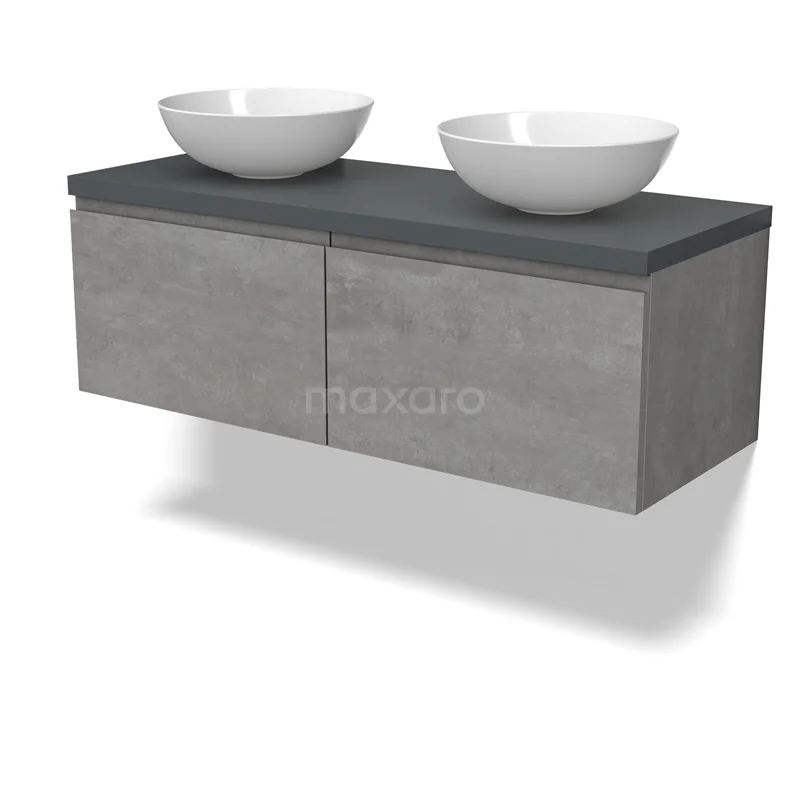 Modulo Plato Vanity units for countertop basin | 120 cm Light grey concrete Handle-less front Dark grey worktop 2 Side-by-side drawers