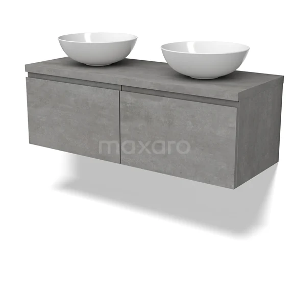 Modulo Plato Vanity units for countertop basin | 120 cm Light grey concrete Handle-less front Light grey concrete worktop 2 Side-by-side drawers