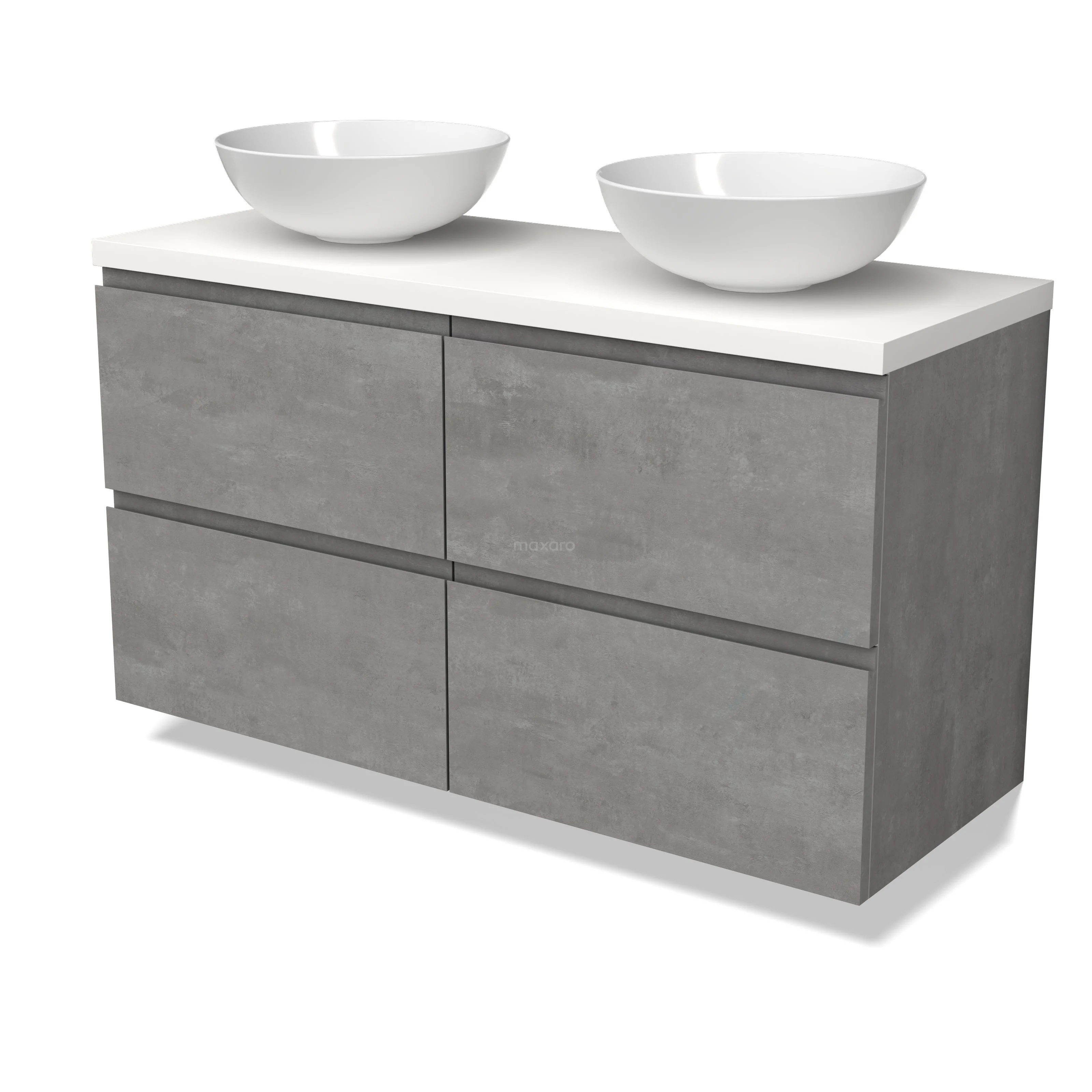 Modulo Plato Vanity units for countertop basin | 120 cm Light grey concrete Handle-less front Matte white worktop 4 drawers