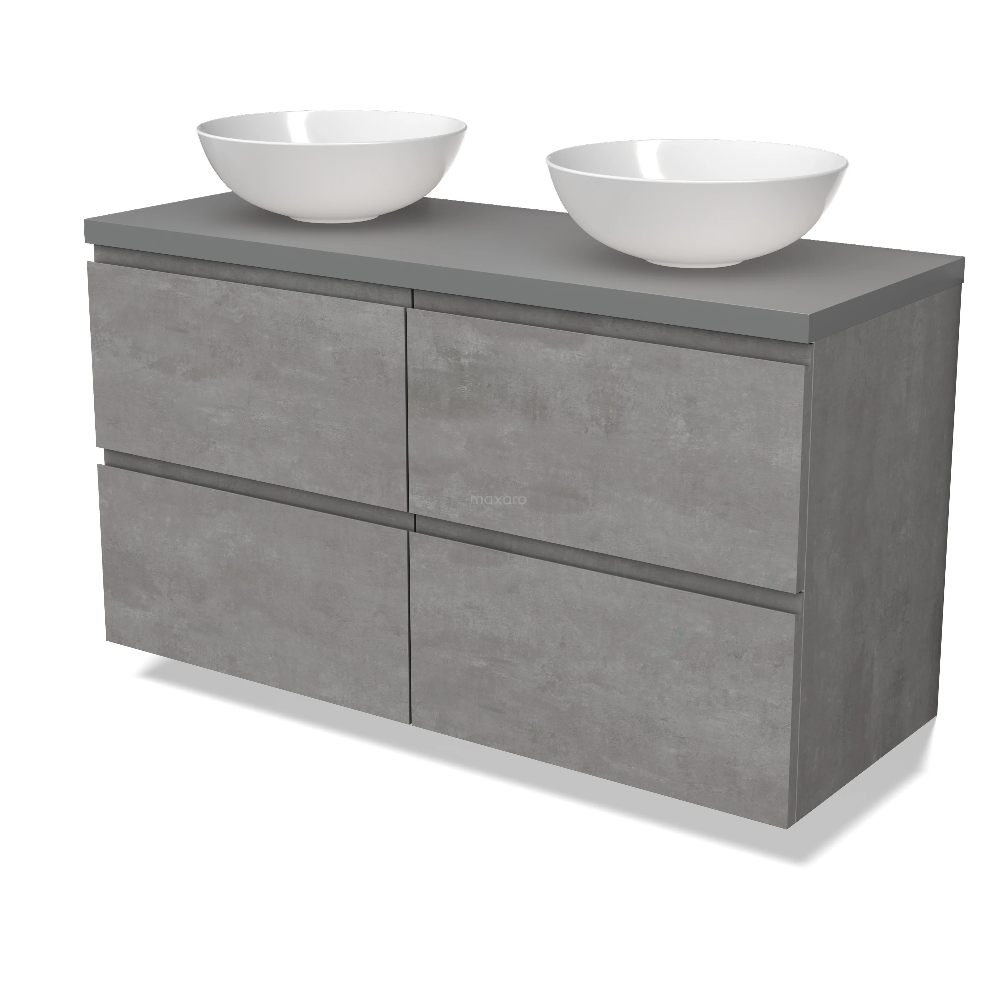 Modulo Plato Vanity units for countertop basin | 120 cm Light grey concrete Handle-less front Mid grey worktop 4 drawers