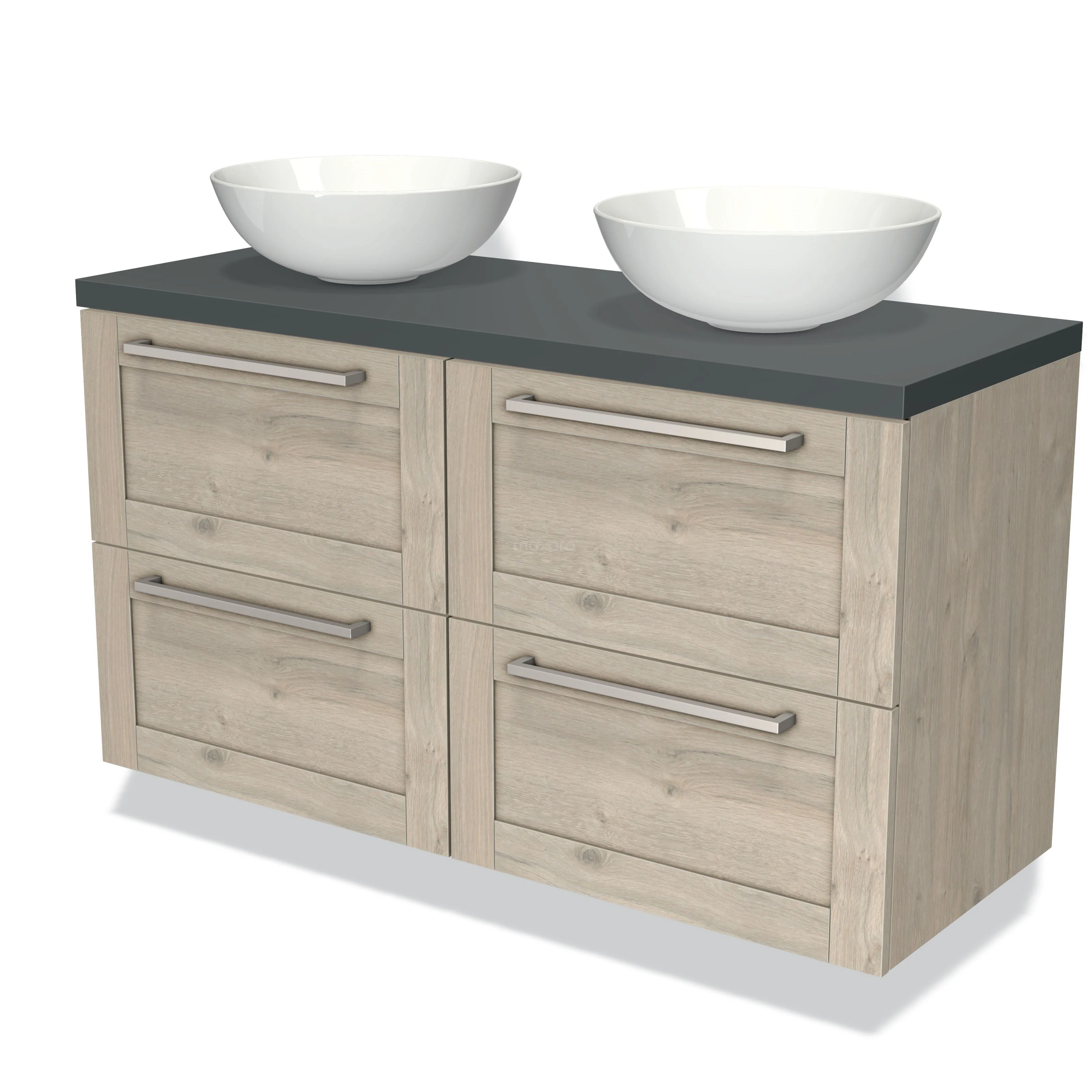 Modulo Plato Vanity units for countertop basin | 120 cm Light grey oak Frame front Dark grey worktop 4 drawers