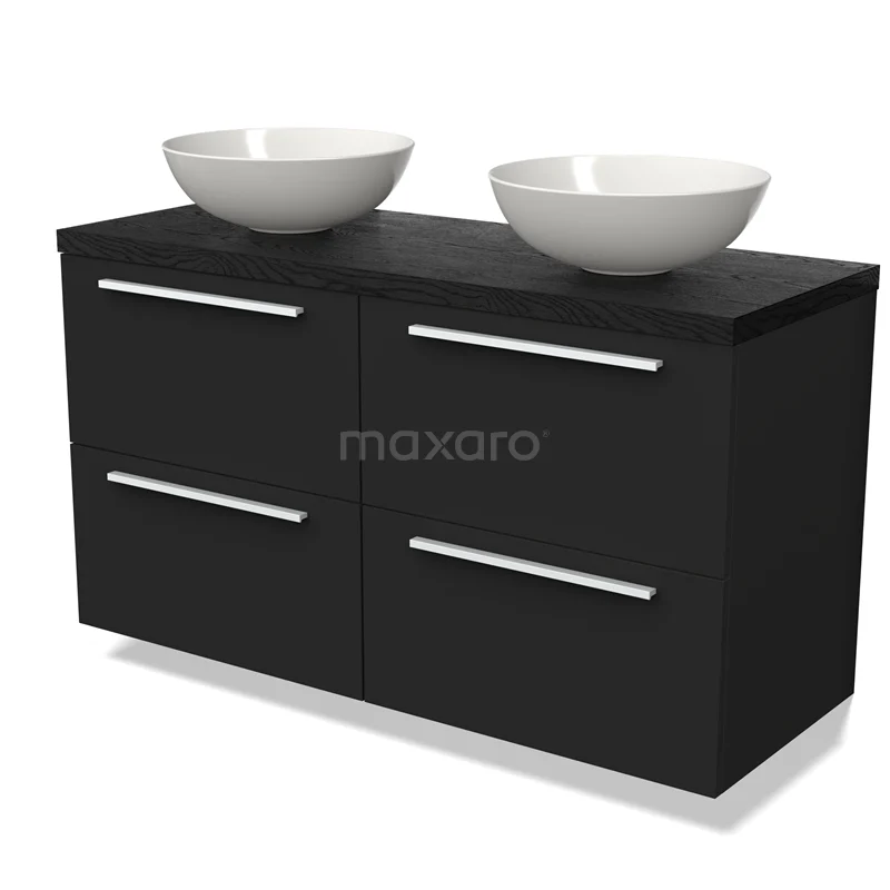 Modulo Plato Vanity units for countertop basin | 120 cm Matte black Flat front Black oak worktop 4 drawers
