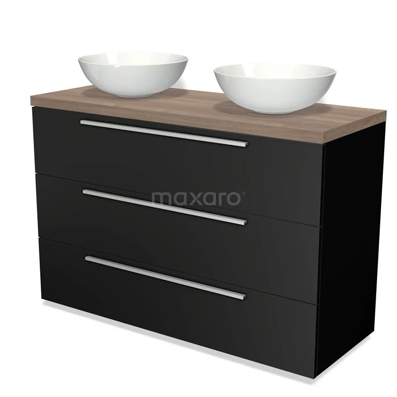 Modulo Plato Vanity units for countertop basin | 120 cm Matte black Flat front Mid brown oak worktop 3 drawers