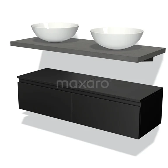 Modulo Plato Vanity units for countertop basin | 120 cm Matte black Handle-less front Dark grey concrete worktop Low floating