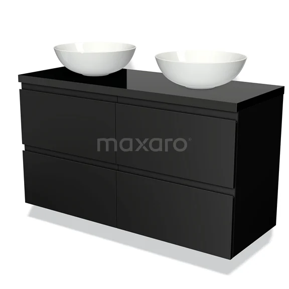 Modulo Plato Vanity units for countertop basin | 120 cm Matte black Handle-less front High-gloss black worktop 4 drawers
