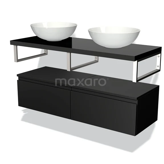 Modulo Plato Vanity units for countertop basin | 120 cm Matte black Handle-less front High-gloss black worktop Low floating