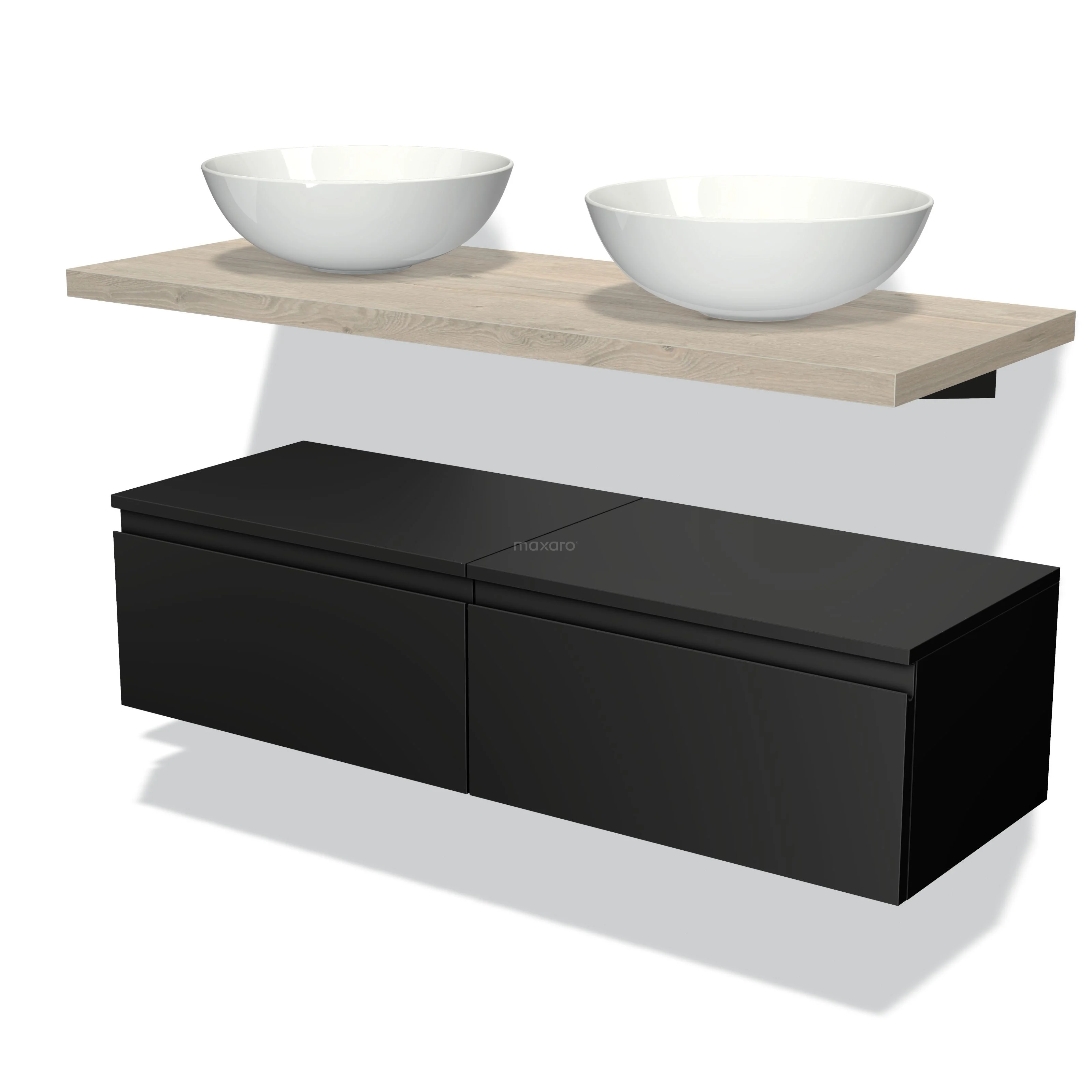 Modulo Plato Vanity units for countertop basin | 120 cm Matte black Handle-less front Light grey oak worktop Low floating
