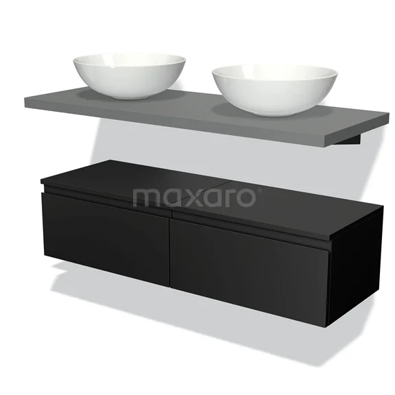 Modulo Plato Vanity units for countertop basin | 120 cm Matte black Handle-less front Mid grey worktop Low floating