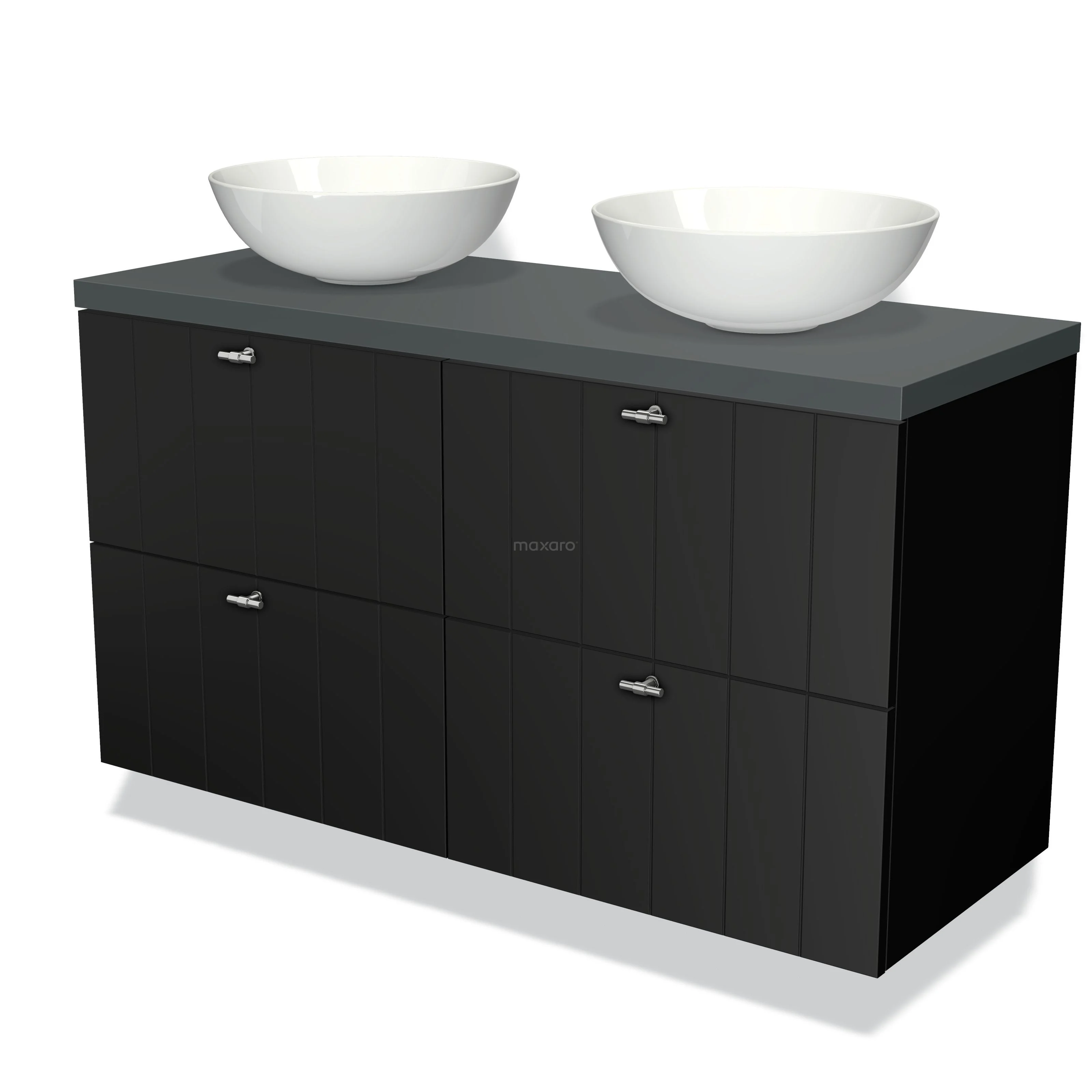 Modulo Plato Vanity units for countertop basin | 120 cm Matte black Slat front Dark grey worktop 4 drawers