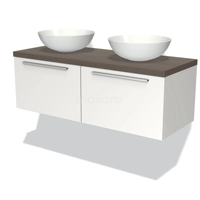 Modulo Plato Vanity units for countertop basin | 120 cm Matte white Flat front Dark brown oak worktop 2 Side-by-side drawers