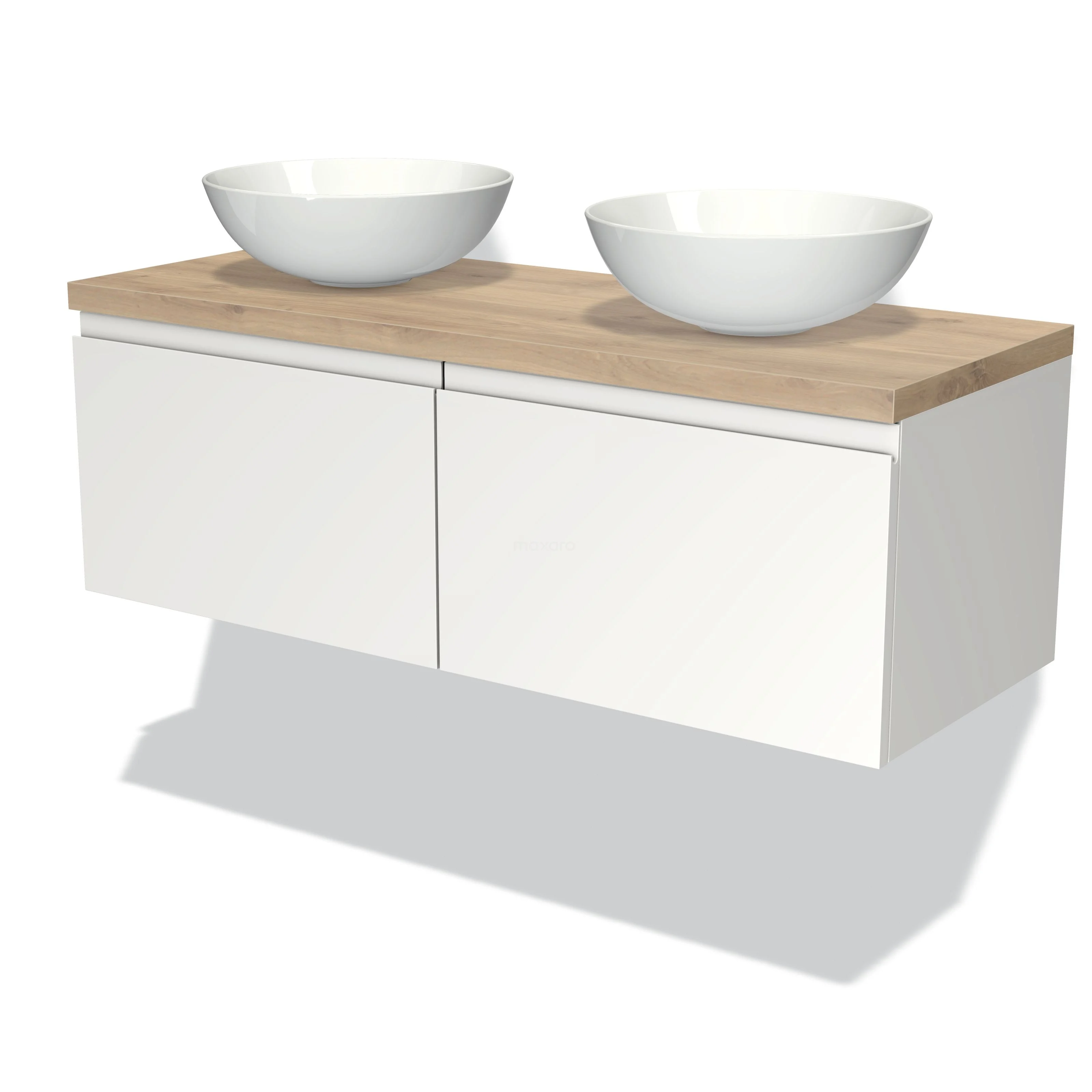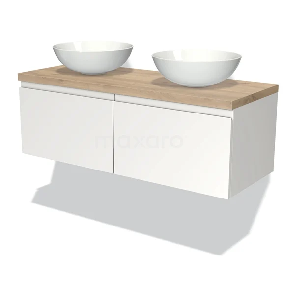 Modulo Plato Vanity units for countertop basin | 120 cm Matte white Handle-less front Light brown oak worktop 2 Side-by-side drawers