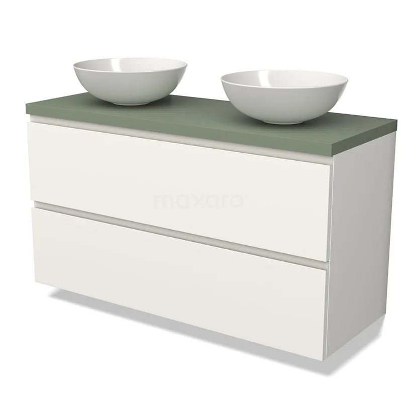 Modulo Plato Vanity units for countertop basin | 120 cm Matte white Handle-less front Sage green worktop 2 Stacked drawers