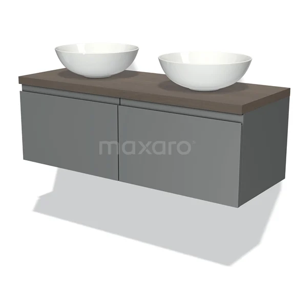Modulo Plato Vanity units for countertop basin | 120 cm Mid grey Handle-less front Dark brown oak worktop 2 Side-by-side drawers
