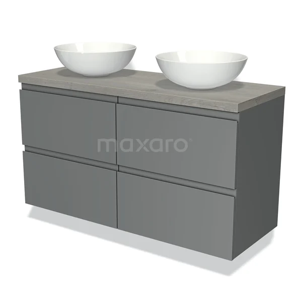Modulo Plato Vanity units for countertop basin | 120 cm Mid grey Handle-less front Grey oak worktop 4 drawers