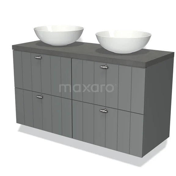 Modulo Plato Vanity units for countertop basin | 120 cm Mid grey Slat front Dark grey concrete worktop 4 drawers