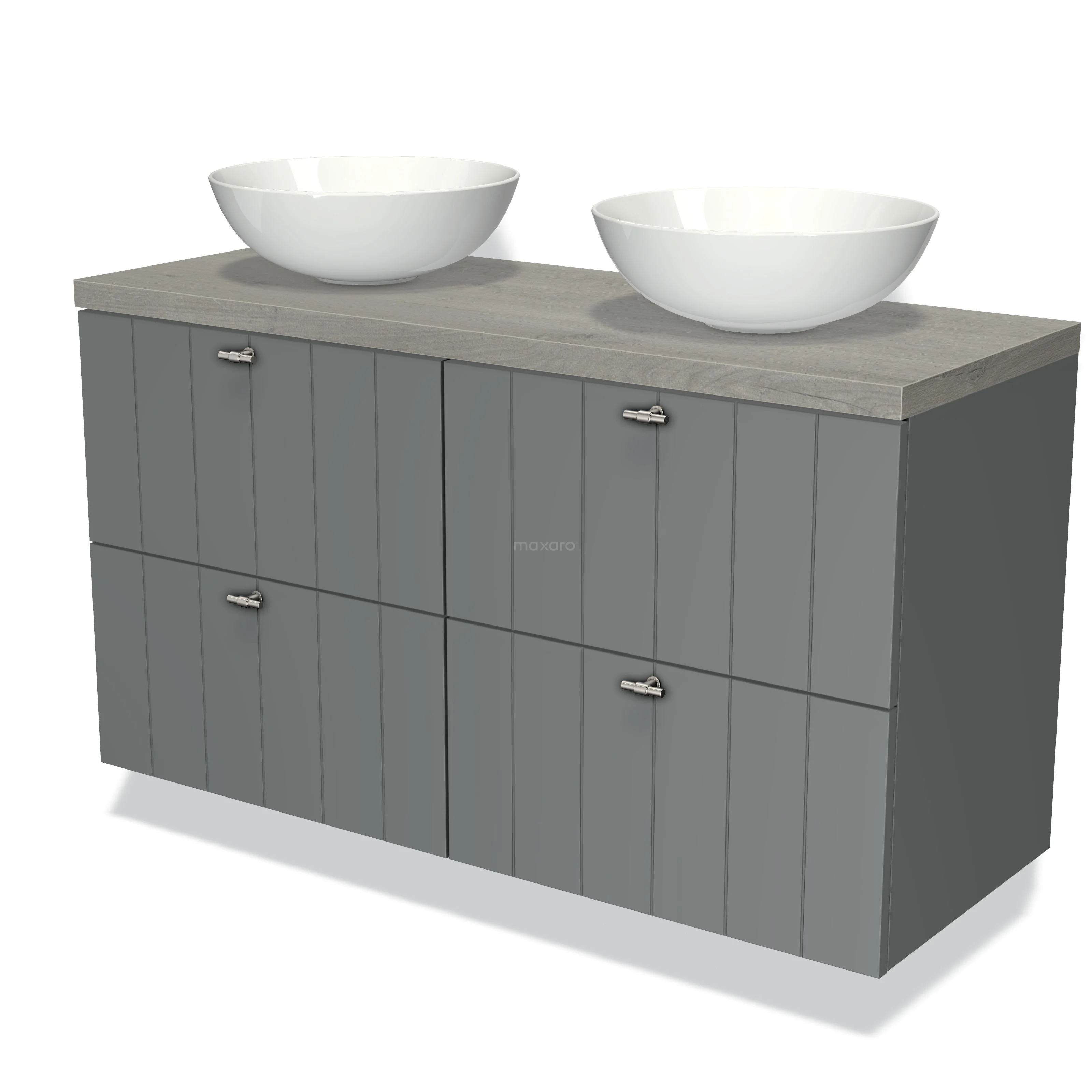Modulo Plato Vanity units for countertop basin | 120 cm Mid grey Slat front Grey oak worktop 4 drawers
