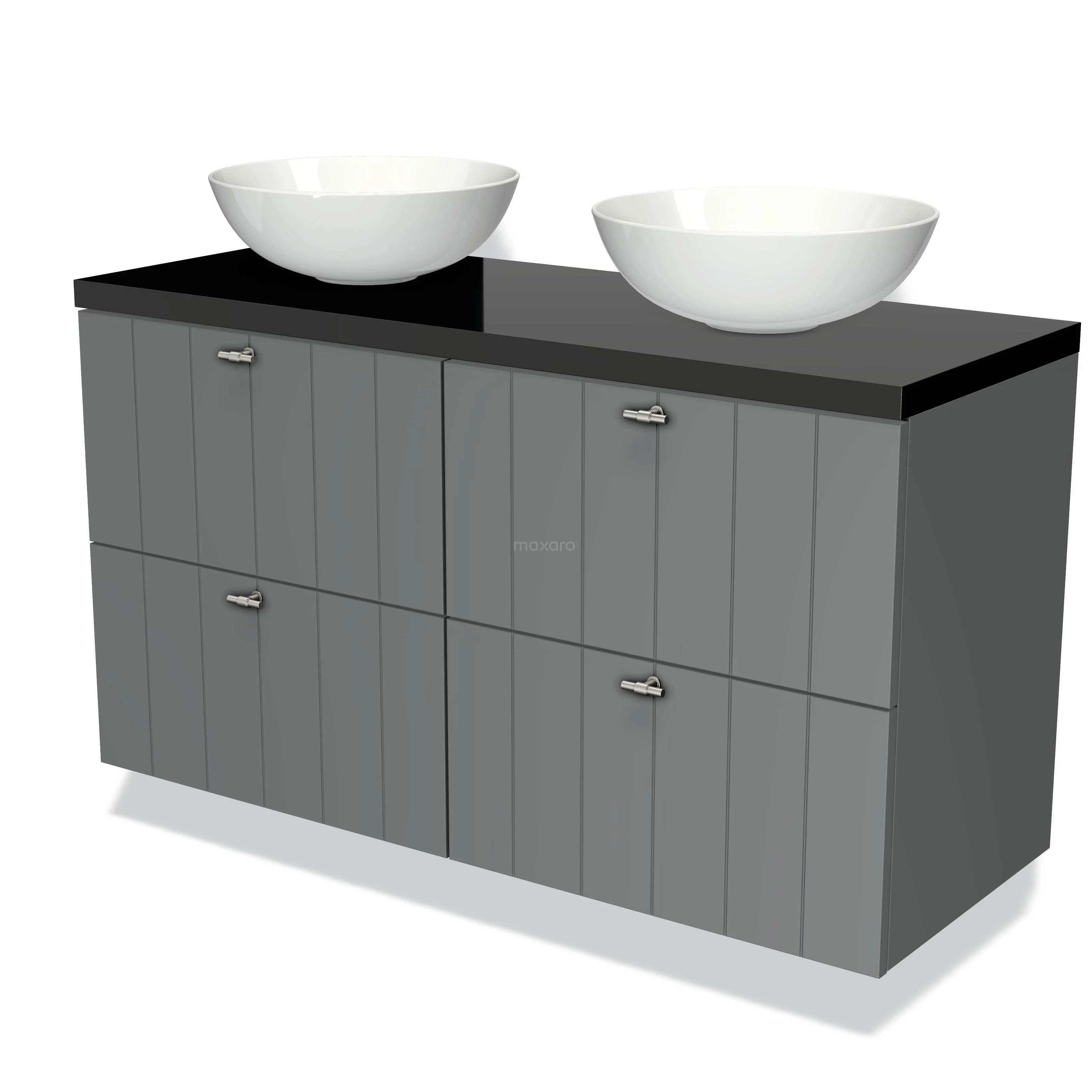 Modulo Plato Vanity units for countertop basin | 120 cm Mid grey Slat front High-gloss black worktop 4 drawers