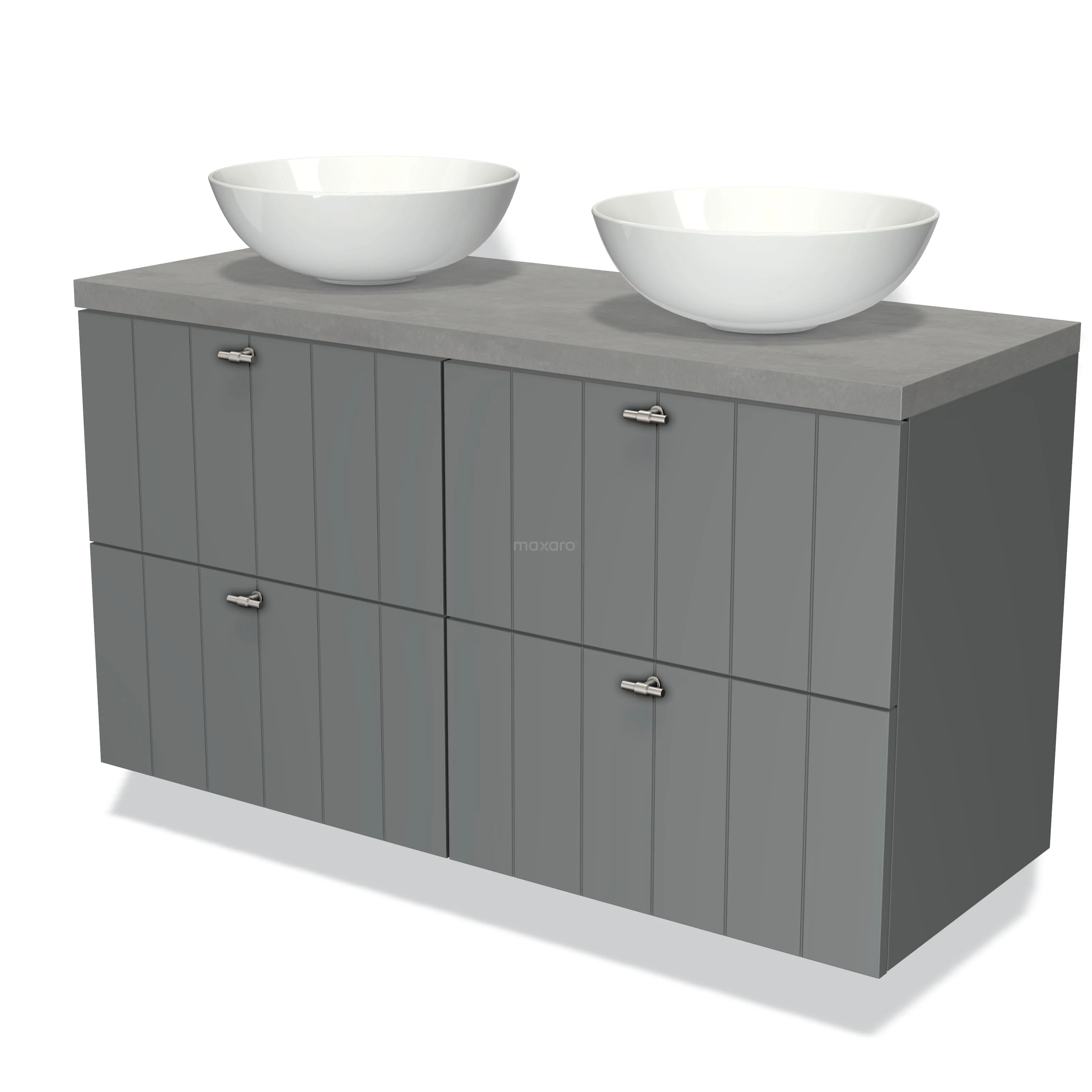 Modulo Plato Vanity units for countertop basin | 120 cm Mid grey Slat front Light grey concrete worktop 4 drawers
