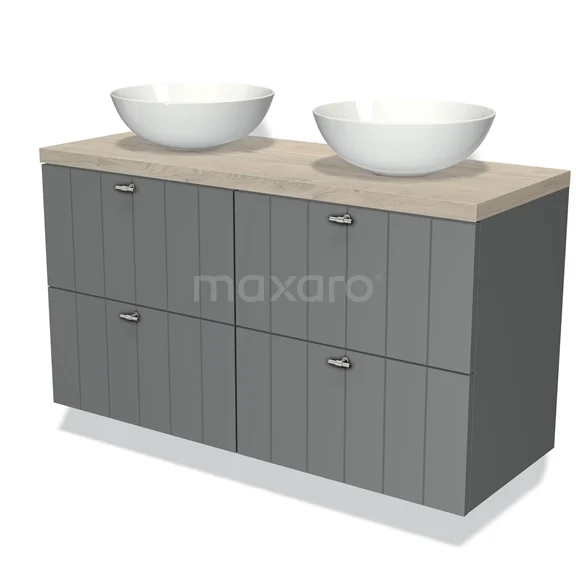 Modulo Plato Vanity units for countertop basin | 120 cm Mid grey Slat front Light grey oak worktop 4 drawers