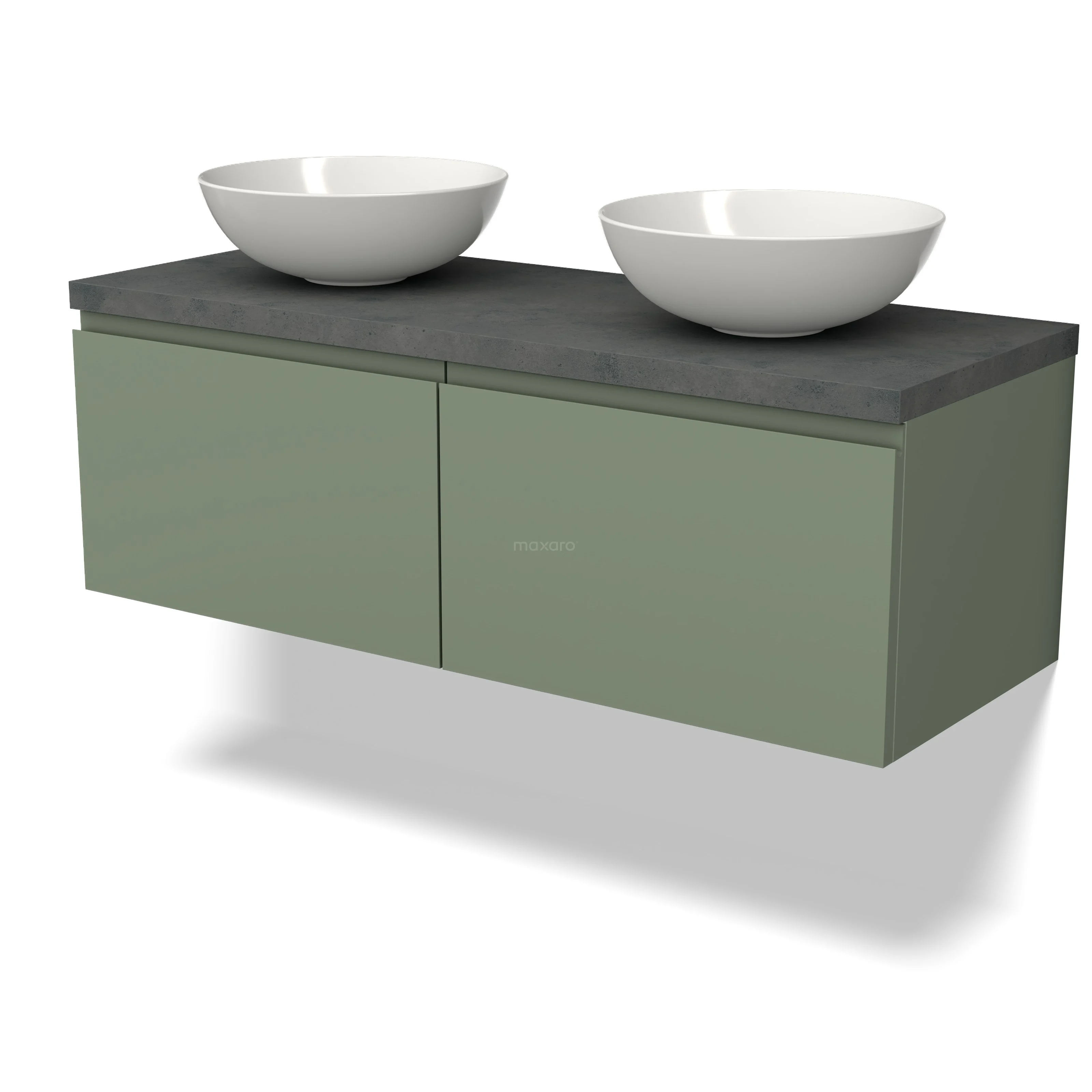 Modulo Plato Vanity units for countertop basin | 120 cm Sage green Handle-less front Dark grey concrete worktop 2 Side-by-side drawers
