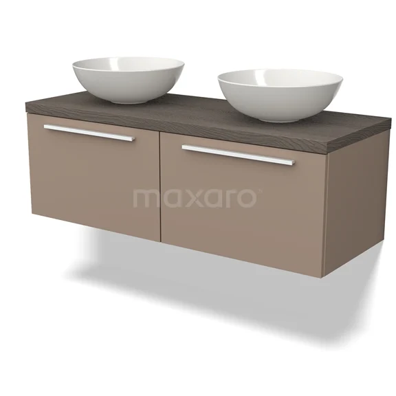 Modulo Plato Vanity units for countertop basin | 120 cm Taupe Flat front Dark brown oak worktop 2 Side-by-side drawers