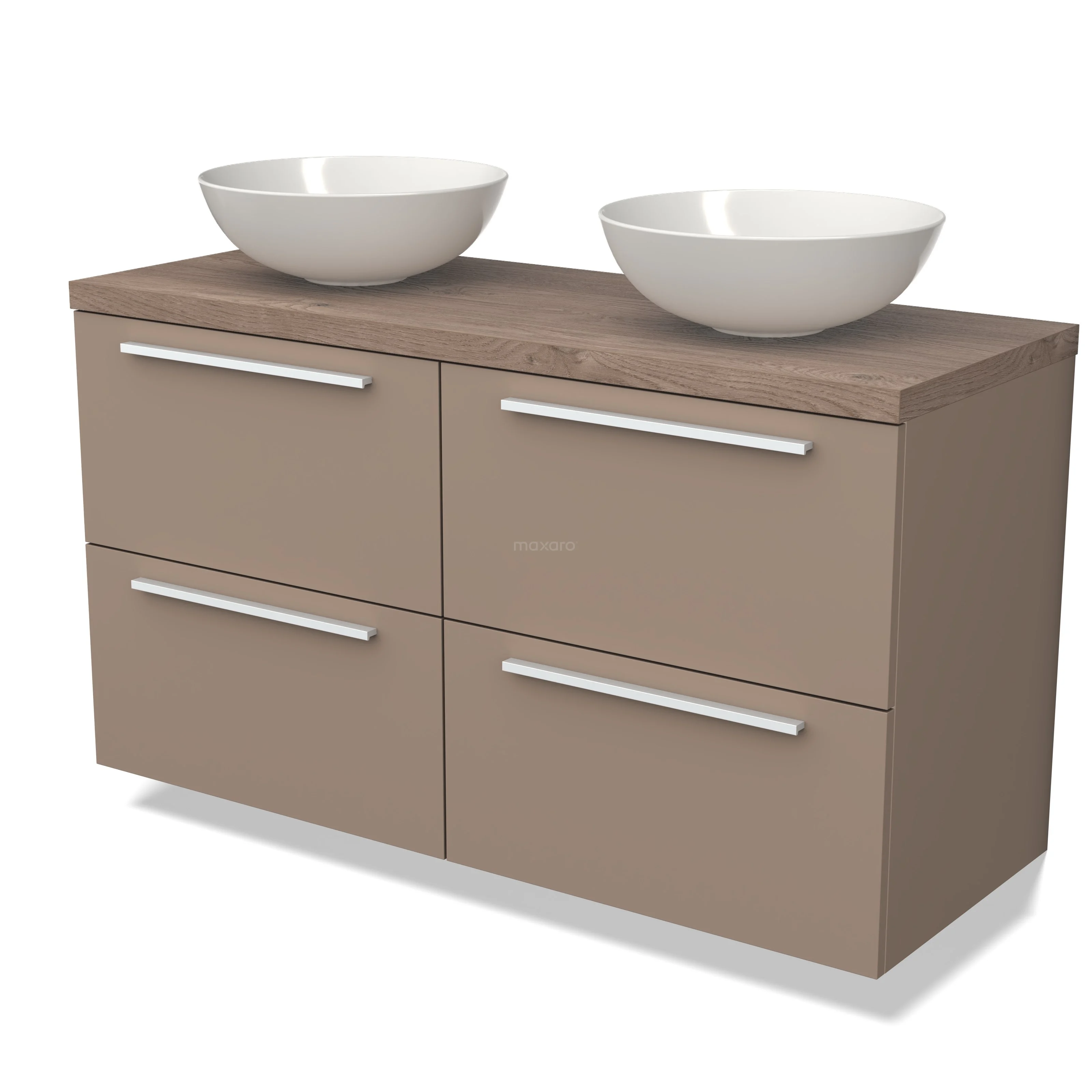 Modulo Plato Vanity units for countertop basin | 120 cm Taupe Flat front Mid brown oak worktop 4 drawers