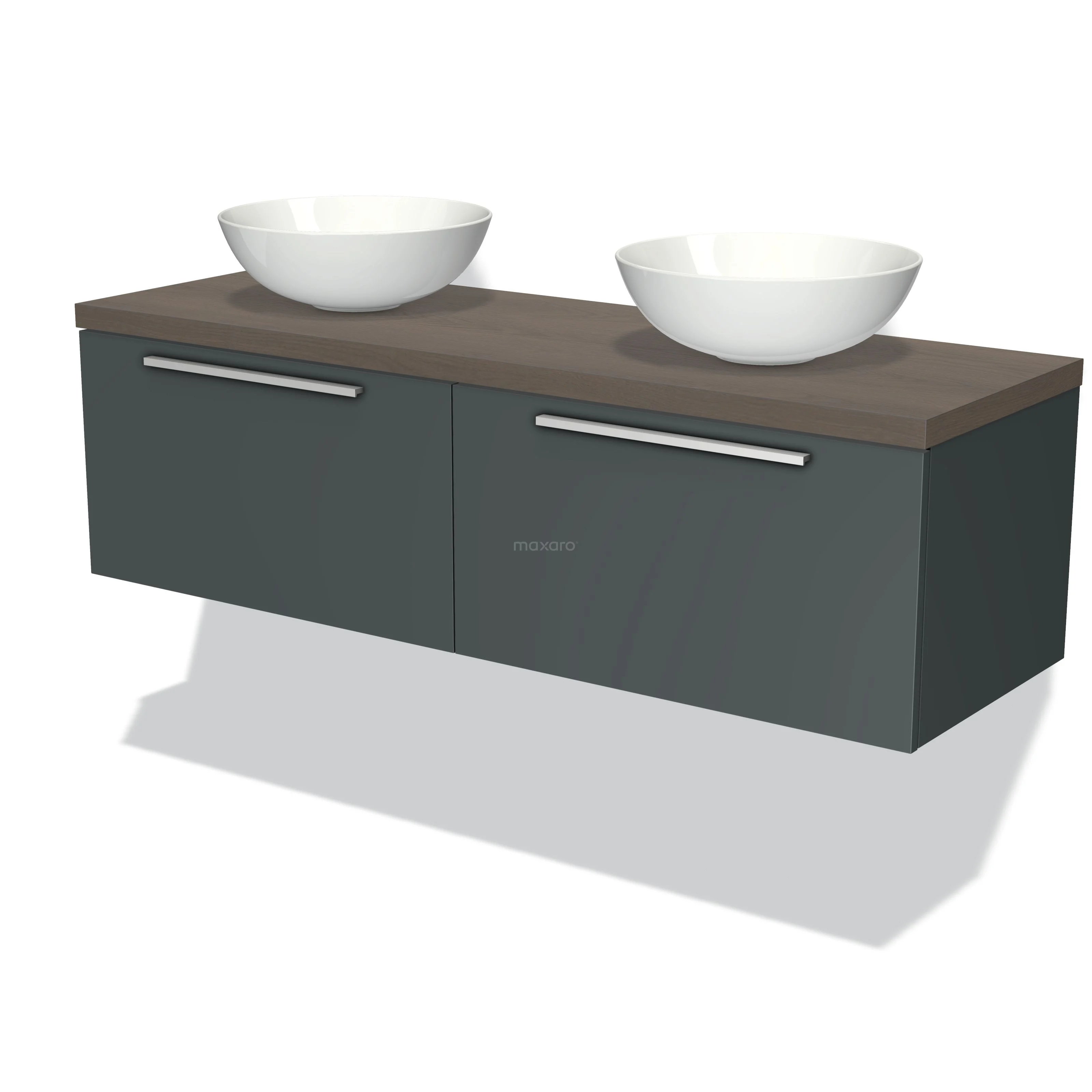 Modulo Plato Vanity units for countertop basin | 140 cm Dark grey Flat front Dark brown oak worktop 2 Side-by-side drawers