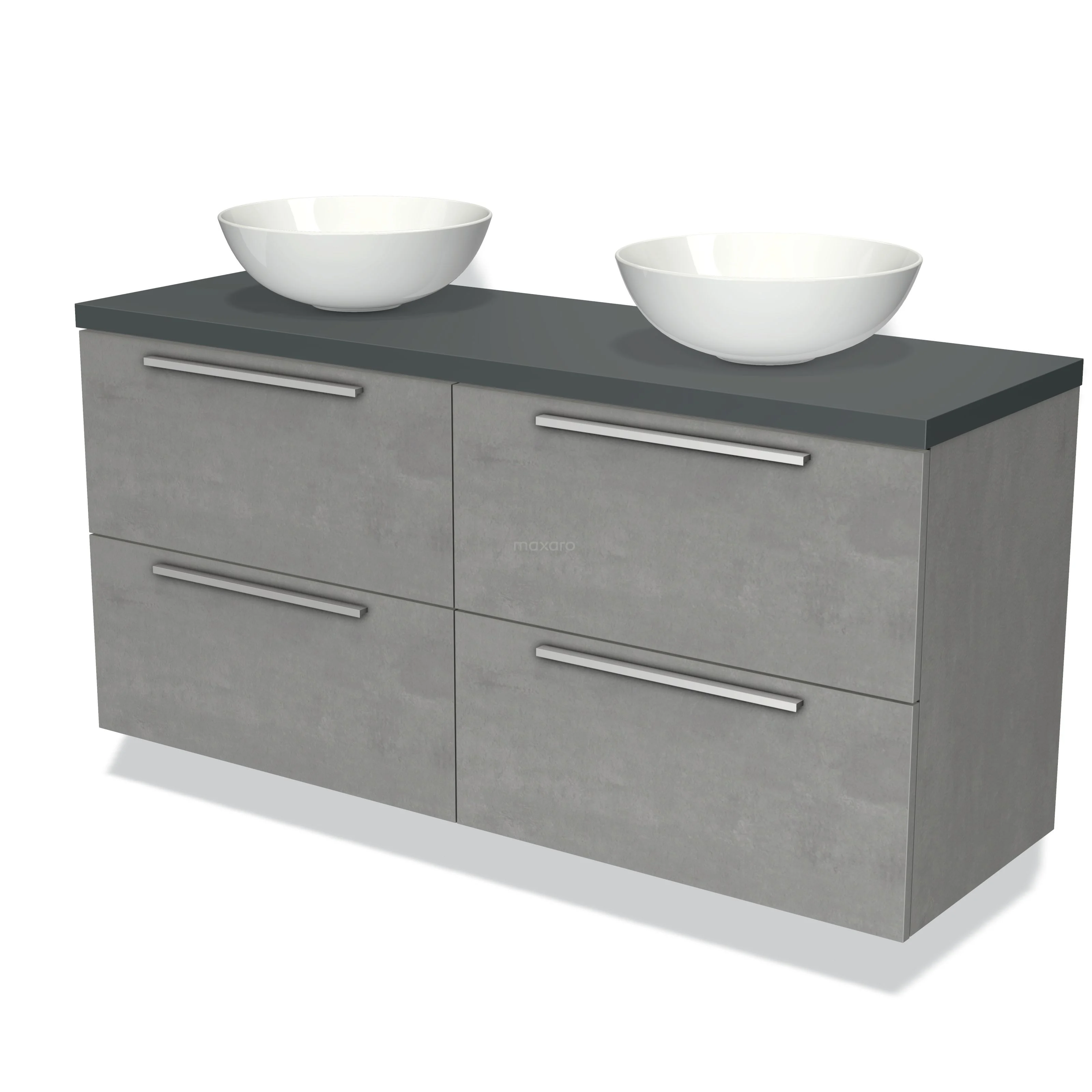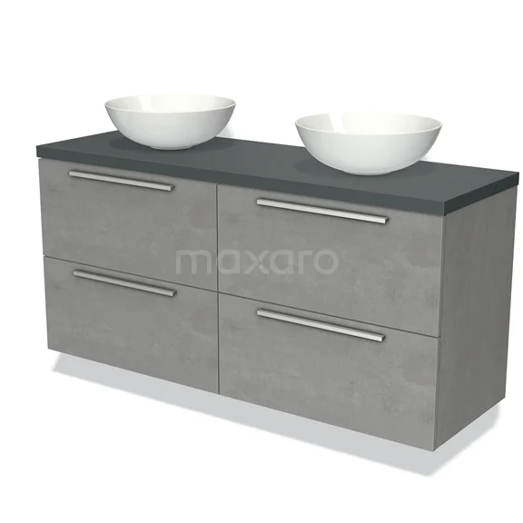 Modulo Plato Vanity units for countertop basin | 140 cm Light grey concrete Flat front Dark grey worktop 4 drawers