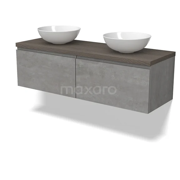 Modulo Plato Vanity units for countertop basin | 140 cm Light grey concrete Handle-less front Dark brown oak worktop 2 Side-by-side drawers