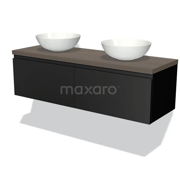 Modulo Plato Vanity units for countertop basin | 140 cm Matte black Handle-less front Dark brown oak worktop 2 Side-by-side drawers