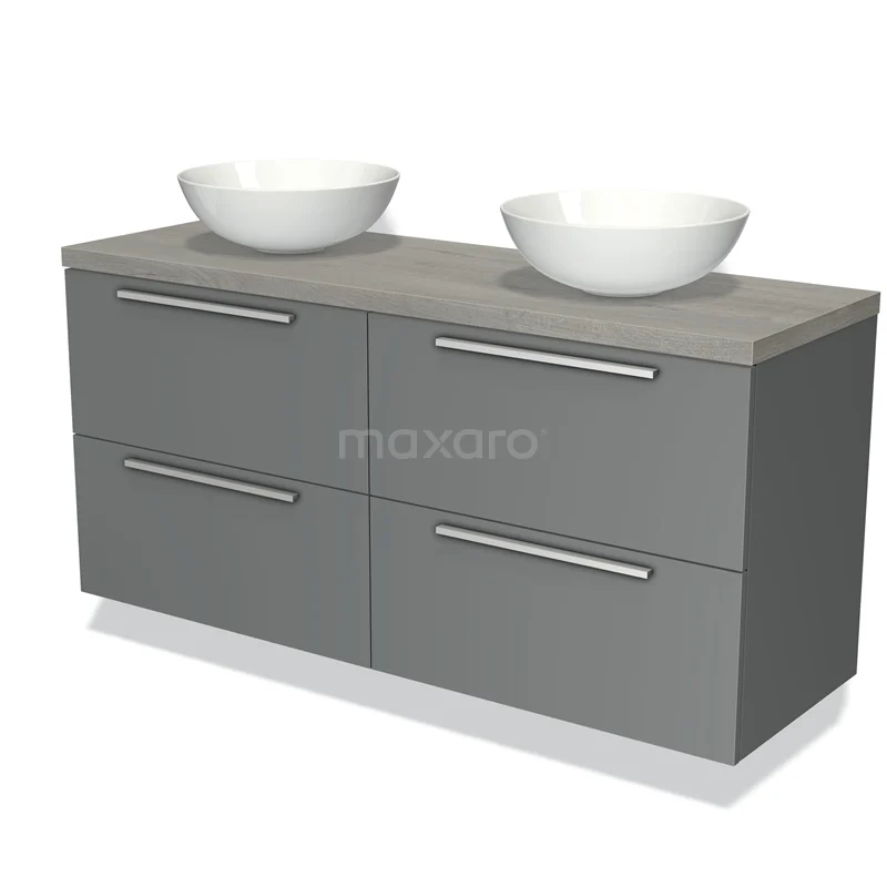 Modulo Plato Vanity units for countertop basin | 140 cm Mid grey Flat front Grey oak worktop 4 drawers