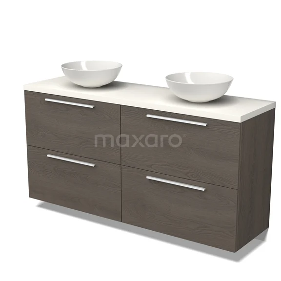 Modulo Plato Vanity units for countertop basin | 160 cm Dark brown oak Flat front Matte white worktop 4 high drawers