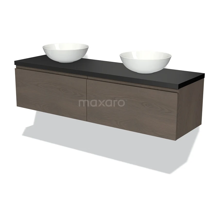 Modulo Plato Vanity units for countertop basin | 160 cm Dark brown oak Handle-less front Matte black worktop 2 Side-by-side drawers