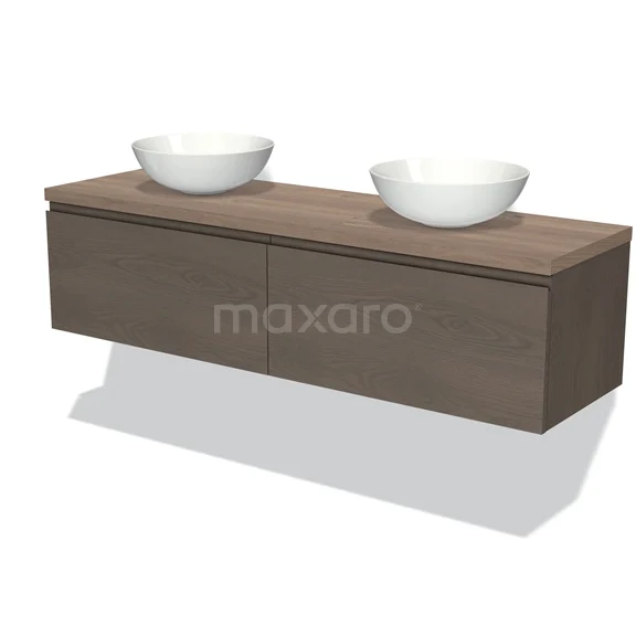 Modulo Plato Vanity units for countertop basin | 160 cm Dark brown oak Handle-less front Mid brown oak worktop 2 Side-by-side drawers