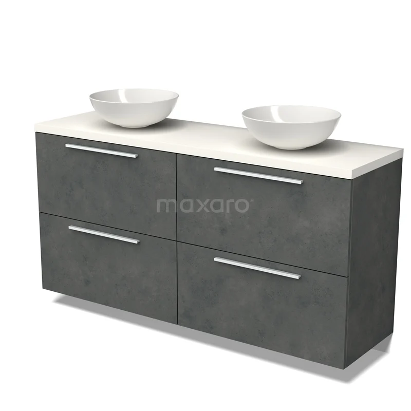 Modulo Plato Vanity units for countertop basin | 160 cm Dark grey concrete Flat front Matte white worktop 4 high drawers